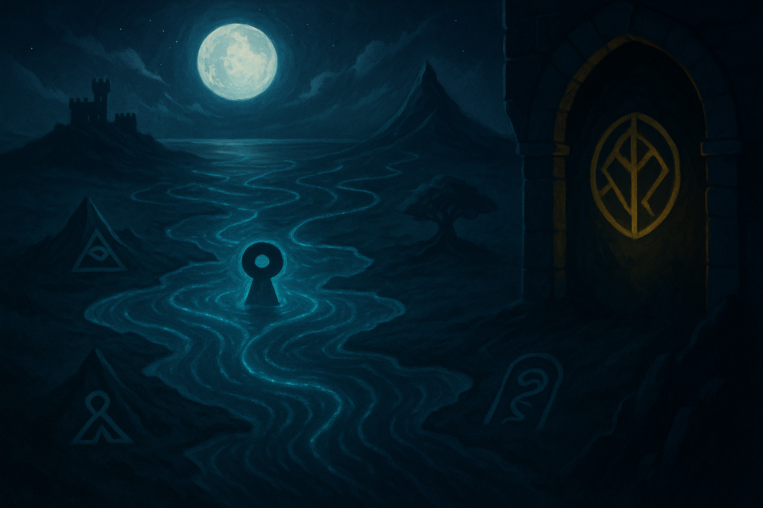 „Kľúč je ukrytý tam, kde sa svetlo dotkne vody trikrát.“ 🌙